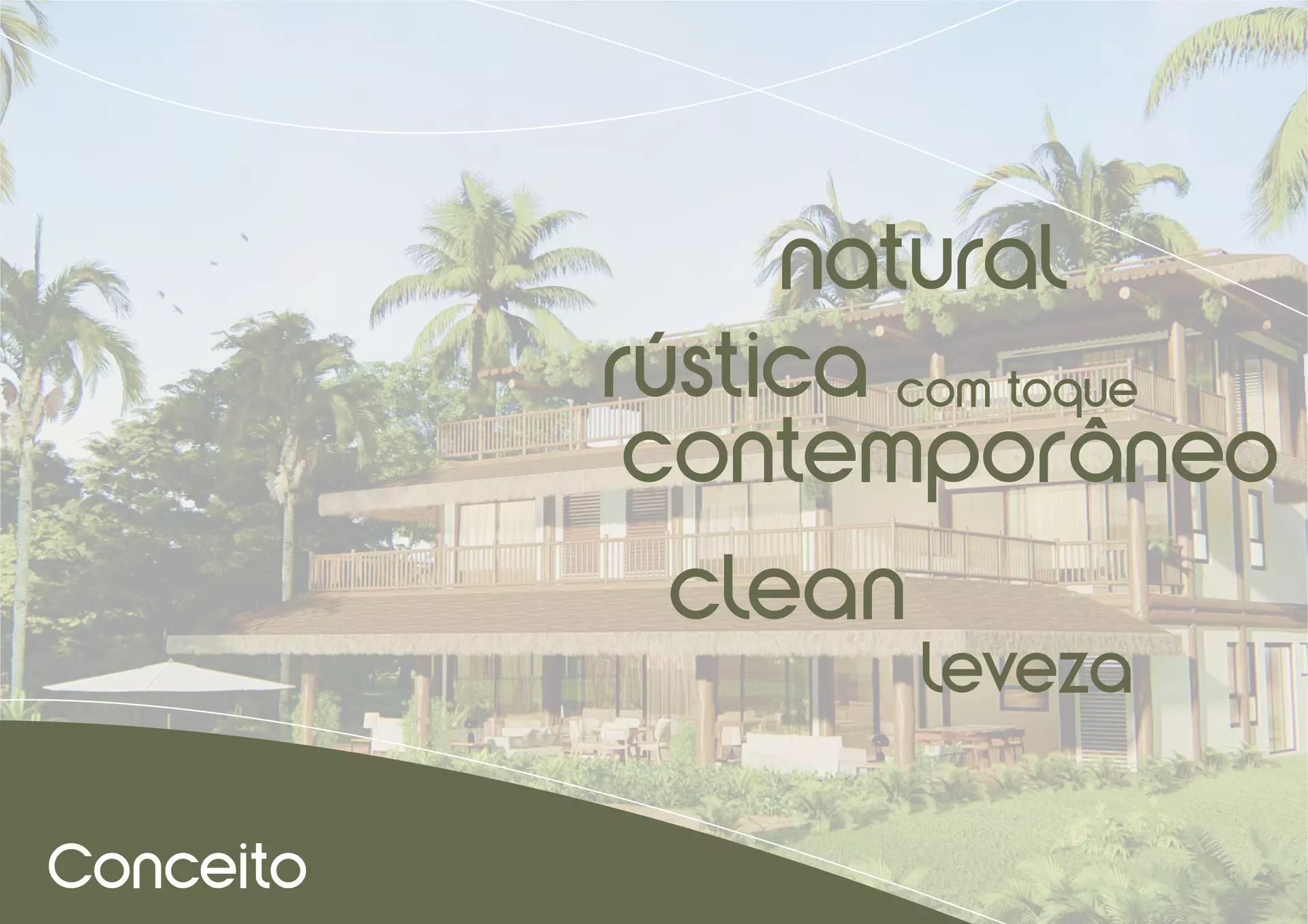 Nosso aprofundamento partiu da busca por uma linguagem visual que se integrasse de forma orgânica ao ambiente, respeitando o cenário tropical e valorizando sua atmosfera única.